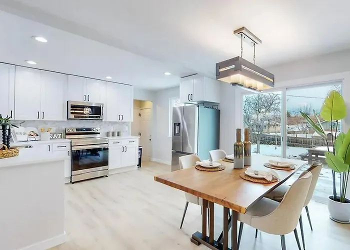 Die Villa bietet eine Essecke mit Ausstattung zur Kaffee- & Teezubereitung. Sie können auch eine Kaffee-/Teemaschine, einen Kühlschrank und Küchenutensilien nutzen, um Ihre eigene Mahlzeit zuzubereiten. Verbringen Sie einen schönen Abend im Restaurant Original Hamburger Stand, das nur 13 Minuten Fußweg von hier entfernt liegt. Der Flughafen Denver International ist innerhalb von 35 Autominuten von der Villa zu erreichen.